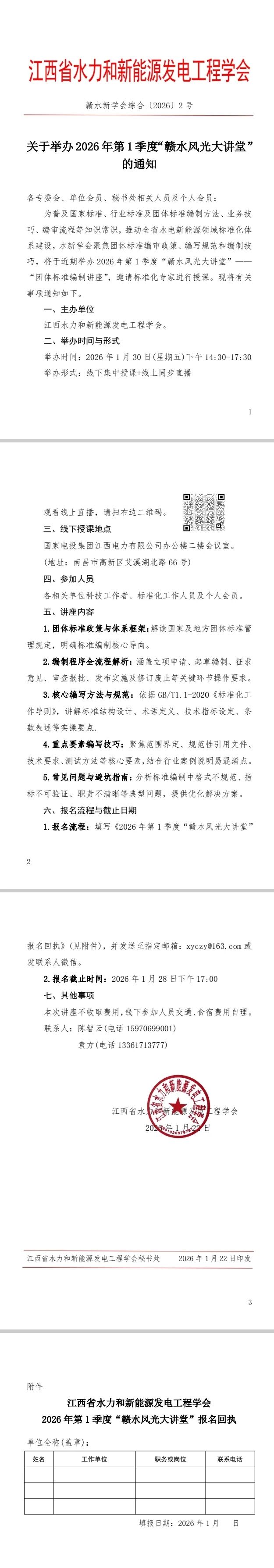 关于举办2026年第一季度“赣水风光大讲堂”的通知